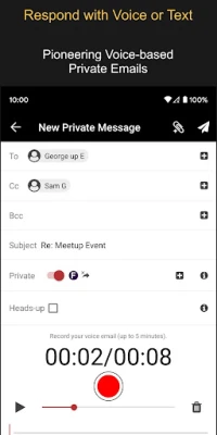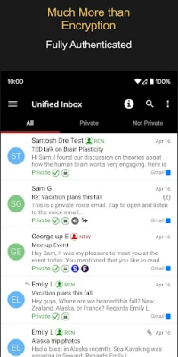 Secured communication for employees working remotely and consumers. Create a new private virtual address, or use your existing accounts, for encrypted email with privacy controls. Pioneering text/voice private emails! Recall sent secure emails anytime to make them vanish. Privatize and securely archive past emails. Easily maintain free service after trial.