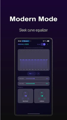 • Modern - Interactive EQ curve with draggable frequency dots, sleek flat design, and semi-arc effect controls.