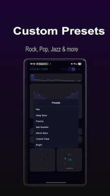 • Custom Presets - Save and load your own EQ profiles, or choose from built-in presets like Deep Bass, Punchy, and Sub Rumble.