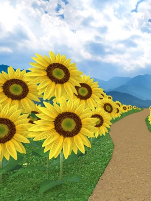 You are in the traditional Japanese house of countryside with surrounded sunflowers.