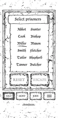 You can play a 2-prisoner solo game on one smartphone, or Host a game which up to three other players can Join using their own devices. During hosted games, all player’s prisoner names and HP levels are displayed in real time on each device, and you will phase in and out of game states together as a group for maximum atmospheric connectivity.