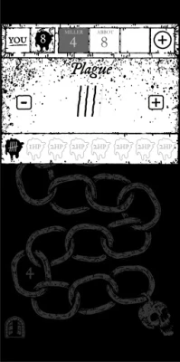 The Plague menu allows you to keep track of your plague level using tally marks as directed by the game rules. When you pass a Plague Threshold an animation is triggered - automatically adjusting your HP on the shackles.