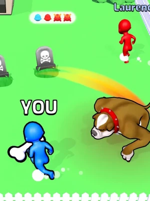 A big dog chases whoever has his bone, be fast to get rid of it before he eats you! It's like Hot Potato game but with bigger stakes, you are always at risk, and your enemies too!