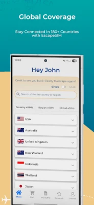 Stay connected anywhere in the world with EscapeSIM's digital eSIM solutions. Our app provides instant access to mobile data plans across 180+ countries and regions, eliminating the need for physical SIM cards or hunting for local providers.