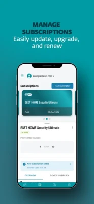 • Get important security and subscription notifications. Access your security information anytime and anywhere. • Check the security status of protected devices on demand. Download protection for new devices and instantly secure them against threats. • Activate powerful functionalities such as unlimited VPN or Password Manager. This protection can be easily shared with friends, family, colleagues or employees. • Install security software for any device without typing in your activation key or login. • Add, manage, and share your subscription. Monitor access, upgrade, update, and renew with ease. • Get easier access to the Anti-Theft feature when you want to mark your device as missing.