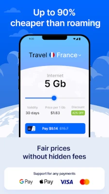 Just download eSIM, install it on your device and connect to the mobile network upon arrival at your destination!