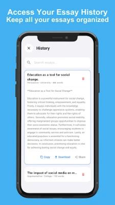 All generated essays are automatically saved in your history section, so you can revisit and reuse them anytime.
