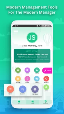 • Smart access allows management to receive and respond to approval requests, resolve reported issues, or discuss queries on the app.
