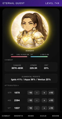 Eternal Quest is an idle‑friendly RPG built around long‑term progression and loot. Choose a class (Knight, Wizard, Archer, or Assassin), build your character through gear, runes, artifacts, enchanting, and crafting, then let the game handle the grind with auto systems. Adventures use light enemy scaling, dungeons are auto‑run, and Offline Dungeon keeps earning while you’re away.