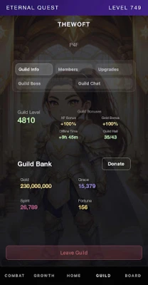 - Guilds with bonuses, chat, and Guild Boss