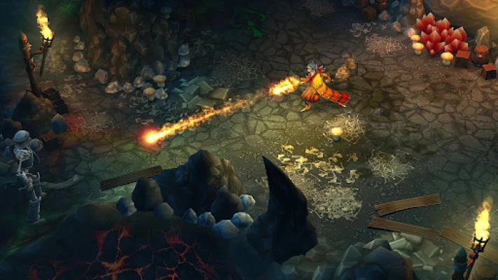 Battle skeletons, zombies, automatons, aliens, demons, dragons and many other creatures, across four beautifully hand-crafted worlds, or in endless generated levels.
