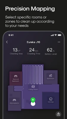 Eureka robot APP just helps you to release your hands from housework. You can only control you robot vacuum via app, to get started, go back to docking station or other controls.