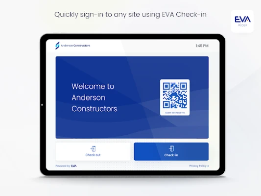 If visitors prefer a contactless sign-in, they can scan the QR code displayed on the kiosk using their phone camera (or our free EVA Check-in app) and complete the check-in on their phone.
