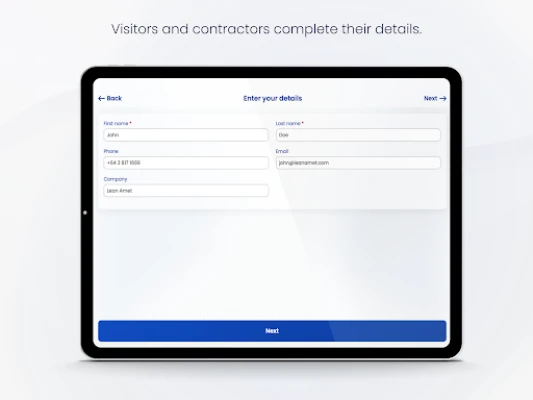 Create multiple visitor types with different screening questions. For example, visitors can complete a non-disclosure agreement, and contractors can acknowledge the site health and safety procedures and complete inductions.