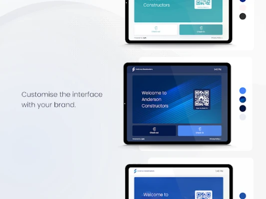 Stylish and intuitive workplace sign-in kiosk for Android tablets. Suitable for attended and unattended sites from offices to construction sites. Visitors, staff, and contractors sign in quickly, completing any health and safety questions while their host is automatically notified of their arrival. Customize the interface with your brand – with support for logos, colours, and background images.