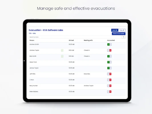 Set up and manage reporting for all visitor management and site safety needs in the portal. Easily see who’s on-site, manage emergency evacuations, send pre-arrival questionnaires, and set up a process for reporting hazards on site. When using EVA Check-in for site safety, you’ll have a documented record of your safety processes and inductions.