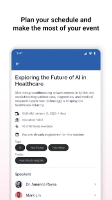 Stay connected and make the most of your event with everything you need in one place. Access your personalized schedule, explore sessions and speakers, and stay informed with real-time updates—all at your fingertips. Whether you're discovering exhibitors, managing your agenda, or updating your profile, the app helps you stay in control and focused on what matters most.