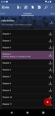 Evie calculates the remaining listening time with high precision for the current chapter and for the entire book.
