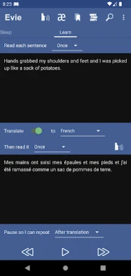 Evie can translate each sentence on the fly, then read the translation out loud to you.