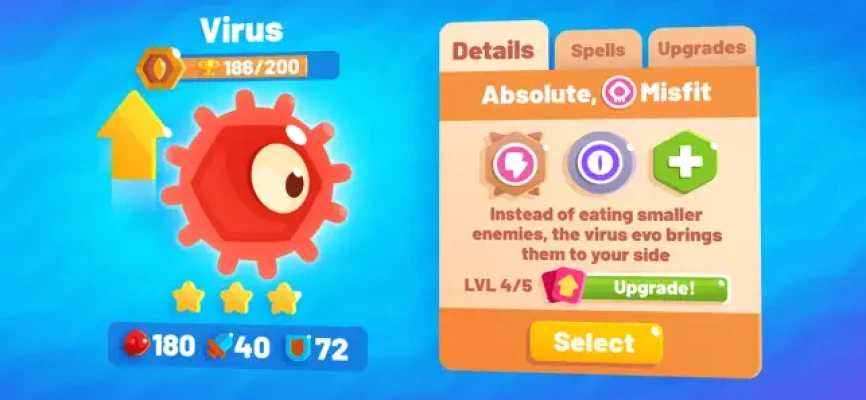 Take control of Evos — colorful creatures that live in a colony and are able to grow and multiply extremely fast. Big Evos eat smaller Evos of another breed. Dominate the area by either eating all rivals or creating the most Evos! 123