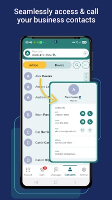• Access Phone Contacts: Easily call and text your existing phone contacts directly from within the eVoice app, simplifying your workflow.