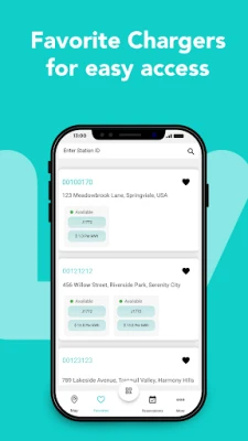 Navigation and Favorites: Get directions to your chosen charging station and save your frequently visited stations for quick access.