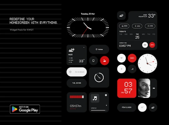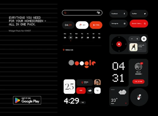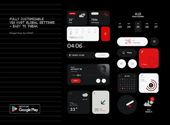 This widget pack is inspired by the design aesthetics of Nothing. It is an independent creation and is not affiliated with, endorsed by, or connected to Nothing Technology Limited in any way.