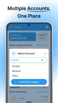 💰 Add a New Account, set up multiple accounts and track your spending and budgeting.