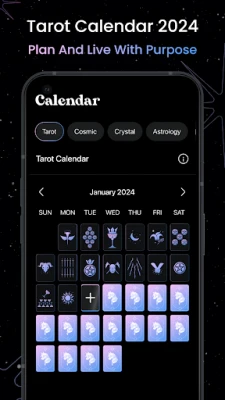 Insightful tarot calendar allows you daily tarot spreads, draw cosmic card, pull crystal card, and tap astrology card daily. Express your cards daily and submit journal to unlock life path premium feature that reveals the secrets of your past, present, and future.