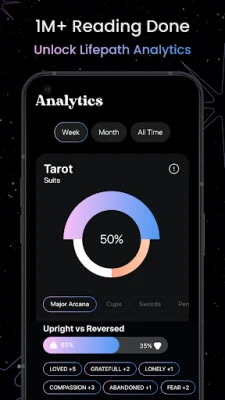 Daily card spreads and journal submission unlocks profound insights of the life path feature. Premium life path analytics offers personalised card interpretations, highlights patterns, trends, and provides a comprehensive understanding of your life journey to take better life decisions ahead.