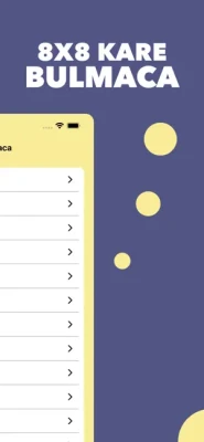• Oyun 8x8 kare bulmacaları içermektedir.• Demo amaçlı yapılmış 20 kare bulmaca içermektedir.• Yeterli sayıda talep oluşması halinde bulmaca sayısı çoğaltılacaktır.