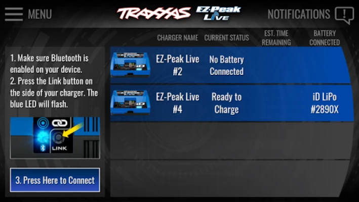 The Traxxas® EZ-Peak Live™ App connects wirelessly via Bluetooth® to the Traxxas EZ-Peak Live multi-chemistry charger (#2971). The app transforms your iOS device into a powerful tool to access the charger’s advanced features with an easy-to-use graphical interface. Connect up to four chargers to your iOS device to monitor charge status, receive remote alerts, and access the charger’s manual settings.