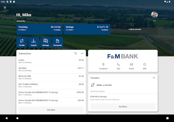 Banking is EASY with this free EZ Banking App from Farmers & Merchants Bank of Central California. You can bank anywhere and anytime! It’s easy to check your balances and recent activity, transfer funds between accounts, make deposits, pay bills, and more! This App is just one more way that F&M Bank makes banking easy for you.