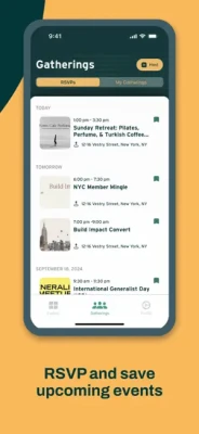 • Browse and RSVP to curated, member-hosted gatherings happening near you