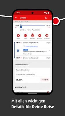 Buy your MobileTickets directly in the app and always take it with you. Your tickets for Niedersachsentarif, participating transport authorities and the Deutschlandtickets - MobileTickets of participating transport authorities are available in the app and make your journeys even easier.