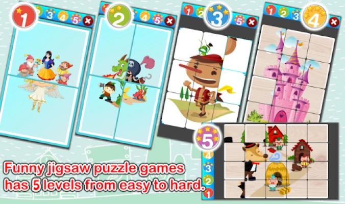 - Funny jigsaw puzzle games has 5 levels from easy to hard.