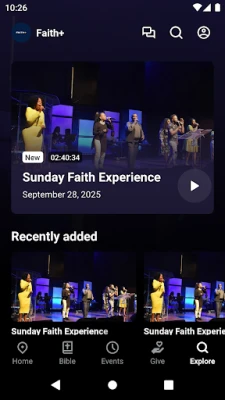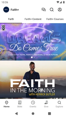 - Watch Faith+ Live - Access On Demand Content For All Faith+ Broadcasters - Access Pastor Kerrick's Notes - Watch or listen to past messages - Sign up for Faith events - Stay up to date with push notifications - Share your favorite messages via social media - Download messages for offline listening