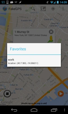 - double tap on the map, choose your faked location and press play and the app will insert the Fake GPS location into your android phone.