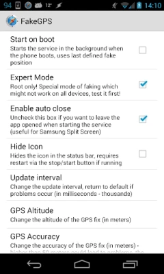 - Settings - change update interval, speed, altitude, accuracy, hide the icon from status bar