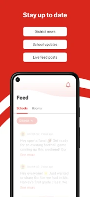 DISTRICT UPDATES In the Live Feed is where you’ll find updates from the administration about what’s going on in the district right now. Whether that’s celebrating a student’s success, or reminding you about an upcoming deadline.