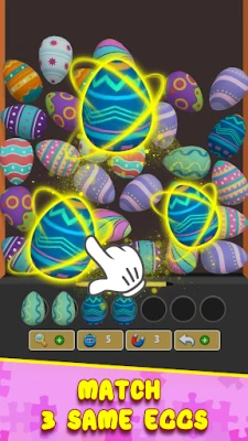 Features: Stunning 3D Graphics: Enjoy beautifully designed 3D levels with colorful and charming egg designs in this egg matching game. 🥚🌈 Simple and Addictive Gameplay: Easy to learn but hard to master. Match three or more eggs to clear them and advance to the next level in this match-3 adventure. 🥚✨ Hundreds of Levels: Test your skills with hundreds of exciting and challenging levels in this free puzzle game. 🕹️💎 Exciting Boosters and Power-Ups: Use a variety of boosters and power-ups to help you overcome tricky levels and achieve high scores. 🚀⚡ Daily Rewards: Log in daily to receive fantastic rewards and bonuses in this casual game. 🎁🎉