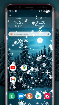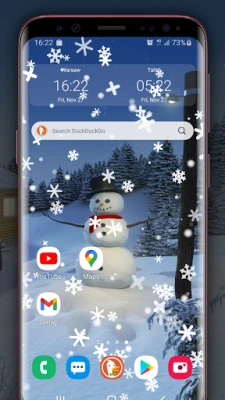 You can run a winter simulation as a live wallpaper or / and display it in the foreground of the screen of your phone.