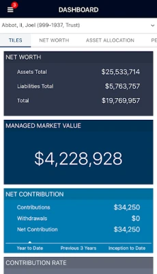 TOP FEATURES • Interactive dashboard showing you your complete financial picture. • Dynamic reports with current investment information. • Document vault for securely sending and receiving files with your wealth advisor. • And more!