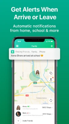 See live location on a private map, get instant arrival alerts, and check daily movement history.