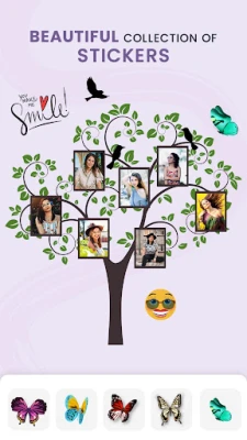 This pic collage frame app gives a variety of category stickers to decorate the family collage like agenda, alphabets, birthday, cartoon, Christmas, emoji, firecrackers, funny, love, mask, plants, social media icons, travels, and unicorn.