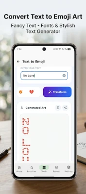 Text to Emoji Art: Turn any word into beautiful art made entirely of emojis. Perfect for sending "No Love" or "Happy Birthday" messages in a creative way.
