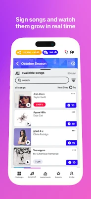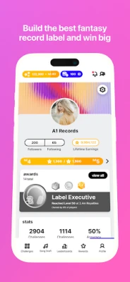 Play “fantasy sports”-like challenges for music as the owner of your own fantasy record label. Create your label, sign songs based on song plays, earn points, rise to the top of the leaderboard, and cash in for merch and experiences.