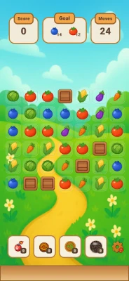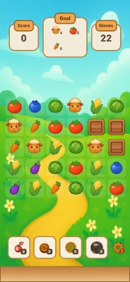 Match juicy fruits, crunchy vegetables, and adorable animals to clear blockers, collect harvests, and complete relaxing levels filled with charm and color.