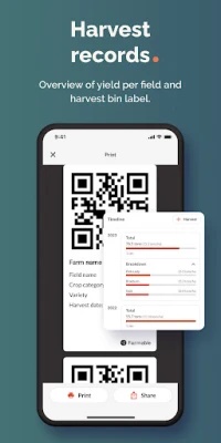 4. Harvest Tracker and Yield Management: Record harvest results and yield per field. Monitor progress during harvest time and compare yields to understand crop productivity. Generate and print harvest labels to organize your produce.