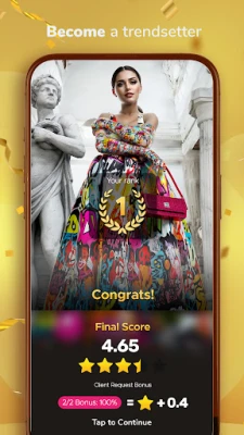 Challenge of the day: Participate in competitions where you're in control of everything: killer clothing, shoes, and backgrounds, to fill your missions and get the results of your vote.